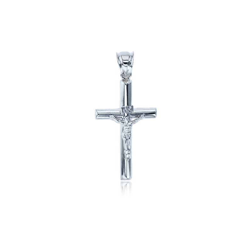 White Gold Polished Tube Crucifix Cross Pendant (14K)