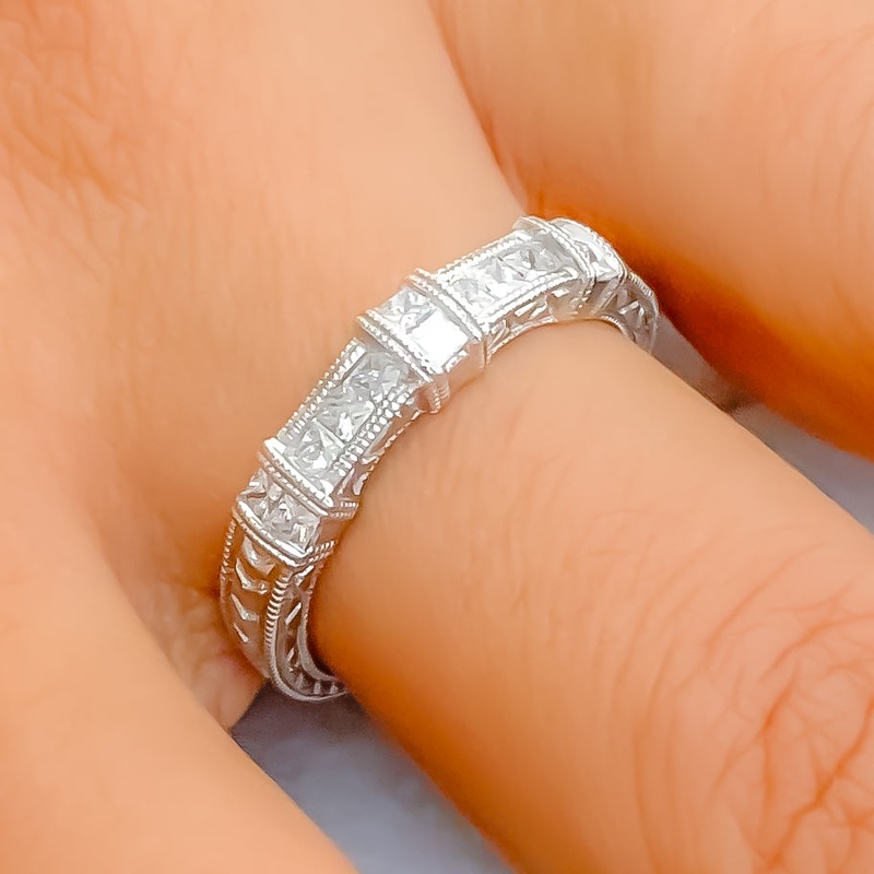 Captivating White Gold Princess Cut Diamond Ring, a testament to timeless elegance. Crafted with 18k white gold, this ring showcases a delicate weight of 3.0g, enhancing its refined beauty. Adorned with a dazzling 0.37ct princess cut diamond, it exudes brilliance and sophistication. With a diamond color of F-G and VS quality, its radiance is unmatched. Available in size 6.75, this ring is a statement of impeccable style. Elevate your look with this exquisite piece that’s designed to perfection.