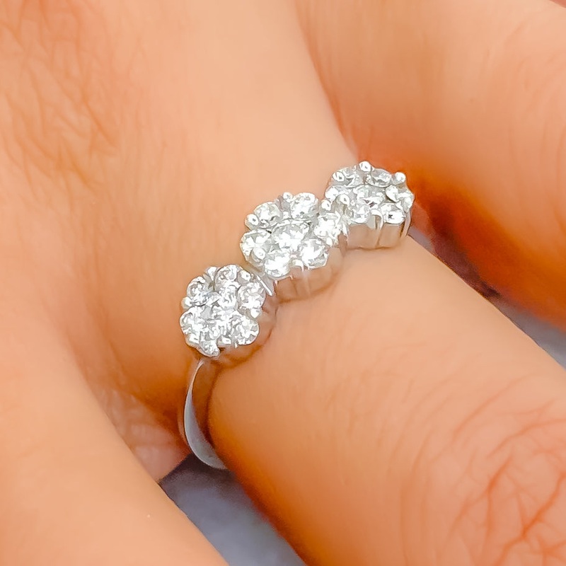 This elegant 18k white gold ring, weighing 2.0 grams, features a classic trio design with 0.50 carats of round brilliant diamonds in F-G color and VS quality. The three diamonds symbolize past, present, and future, creating a meaningful piece that is perfe