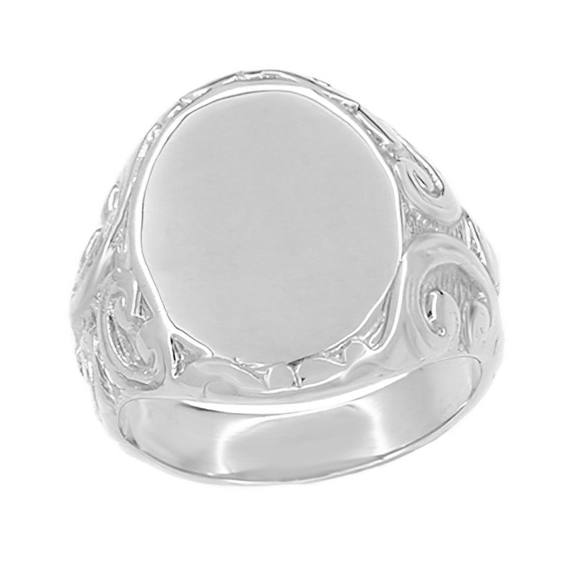 White Gold Vintage Engraved Scrolls Victorian Oval Signet Ring