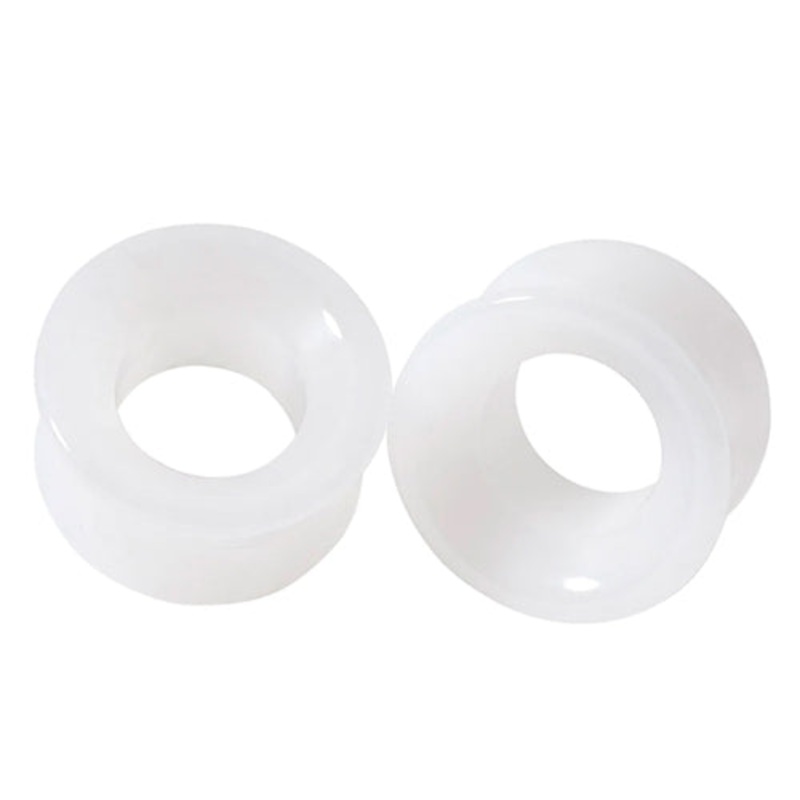 You'll get a matched pair of concave white jade tunnels made by Diablo Organics. These are available in size 9/16" only.00g to 5/8" =wearable area of 7/16"3/4" to 1" =wearable area of 1/2"1-1/4" to 2" =wearable area of 9/16"