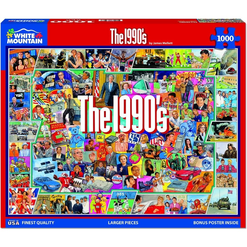 New - Packaging slightly damaged1990 PUZZLE: Feel nostalgic for the 90s with a 1990s collage puzzle that features favorite TV shows, movies, merchandise, politicians, technology, celebrities, and other iconsHIGH QUALITY DESIGN: This 1000 piece jigsaw puzzl