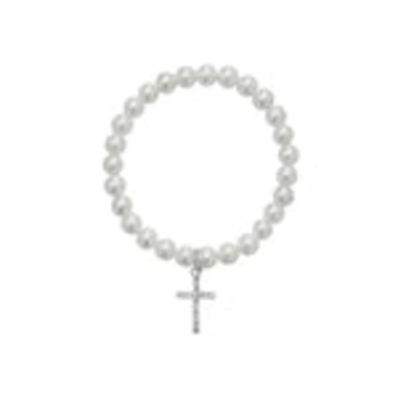 White Pearl Bracelet With Cross Charm