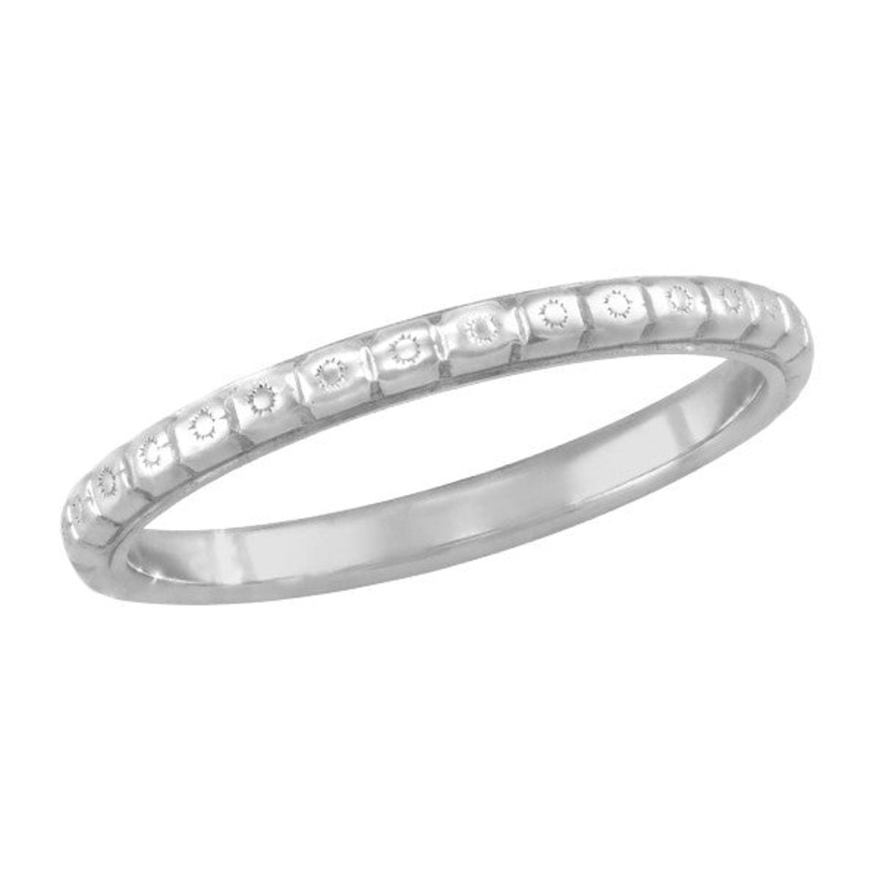 White Rose Art Deco Vintage Heirloom Wedding Band in 18 Karat White Gold | Size 6