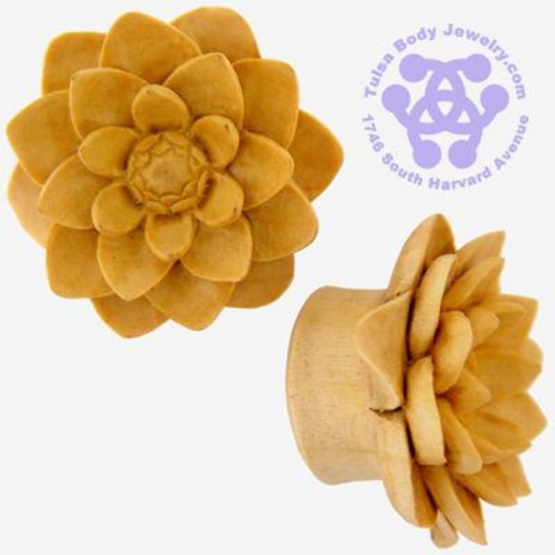 These double flare white water lily plugs are handcarved from crocodile wood by Urban Star Organics. They have approximately 3/8" wearable area between the flares. Choose your size below.Last chance to own these! We can't restock this design because Urban