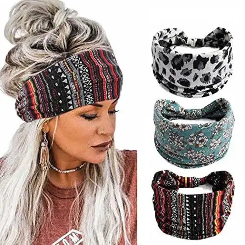 Wide Boho Bandeau Stretch Headbands 3 Pack