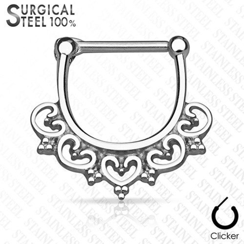 Wide Heart Filigree Septum Clicker 16g – 5/16″ diameter (8mm) Stainless Steel
