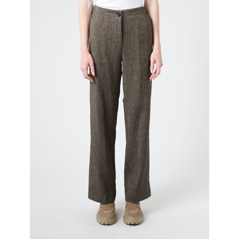 Pomandere trousers in herringbone with a slightly wide legged fit.High-riseHalf elasticized waistbandMetal zip and button fastening in the frontSide seam pocketsWelt back pocketsWide legAnkle lengthMaterialsFabric Content: 48% linen, 31% wool, 16% polyeste