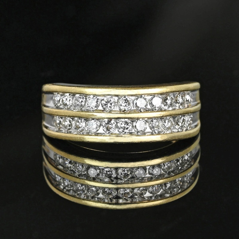 Wide Vintage 14K Gold Double Row Diamond Ring Band