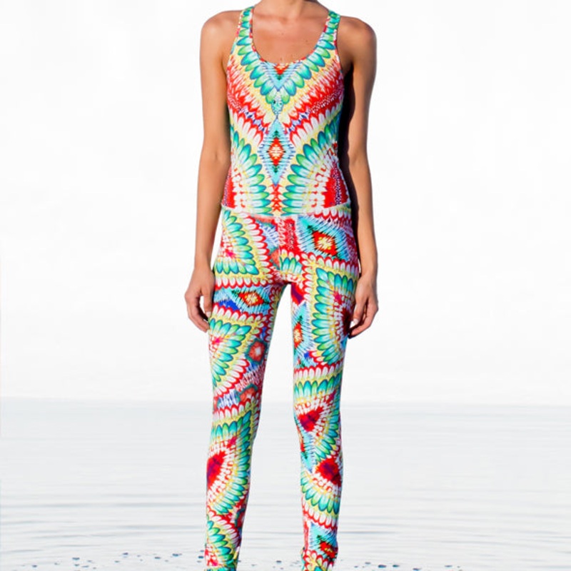 -Edgy racerback style leotard-Back cut outs and bold print create a vibrant feminine look -Fabric flexibility give comfortable full body compression -Two way stretch deisgn-Fabrics composed of 65% recycled Polyamide and 35% Elastomer-High Lycra content cre