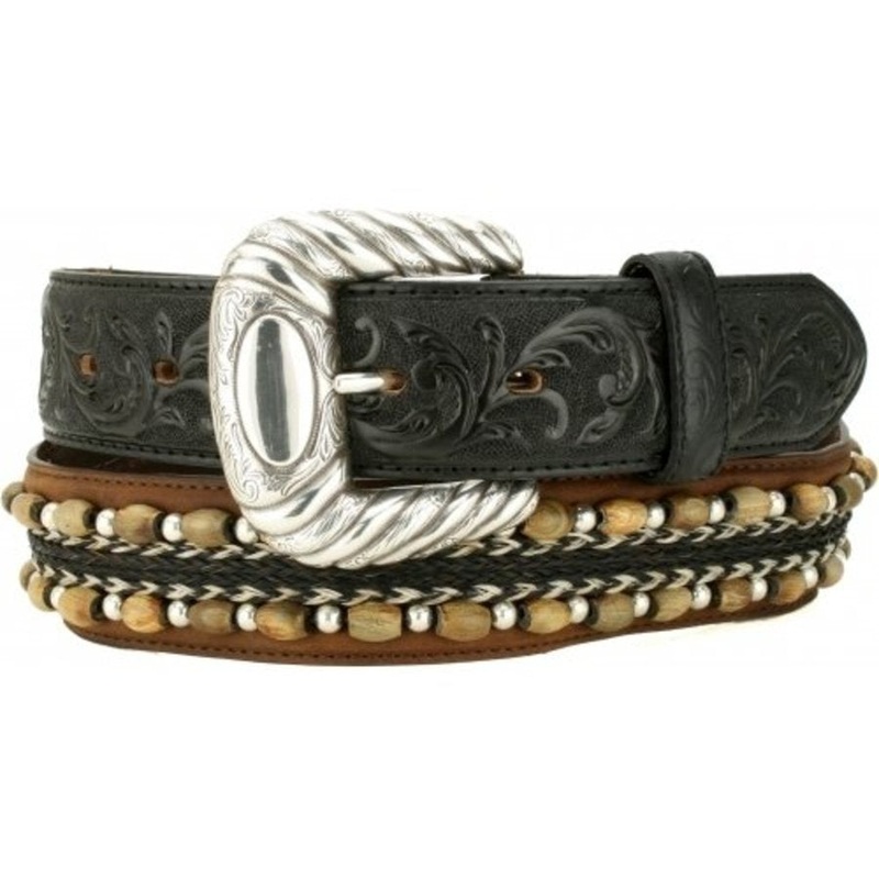 A trio of rich western influences – genuine horsehair, buffalo horn beads and hand tooling – interweave on this striking design.