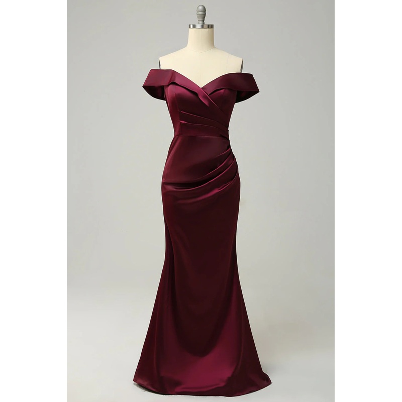 Wine red off the shoulder tight long bridesmaid dress