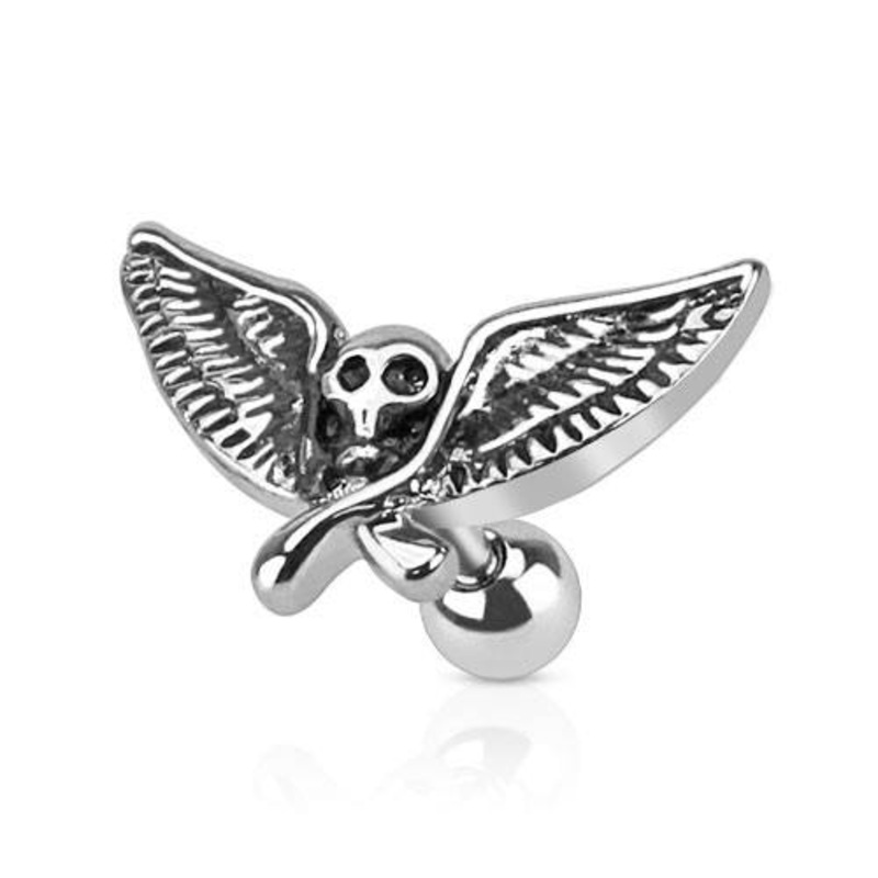 Winged Skull Cartilage Barbell 16g – 1/4″ long (6mm) Stainless Steel