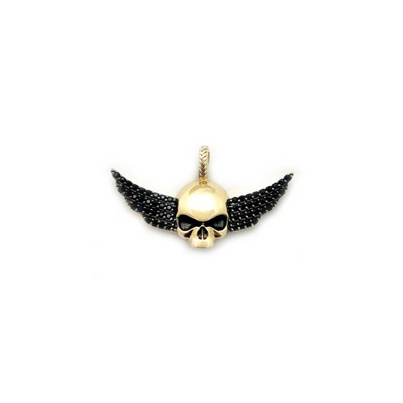 Winged Skull CZ Pendant (14K)