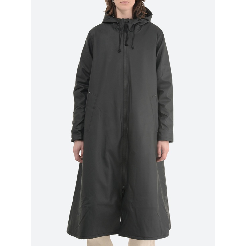 Padded A-line raincoat in 280-gram rainproof rubberized cotton and 150-gram technical insulator filling.A-line silhouetteDrawstring hoodAqua guard zipper (100% rainproof)Knitted wristletsFleece-lined welt side pocketsInside welt pocketDouble-welded seamsMa