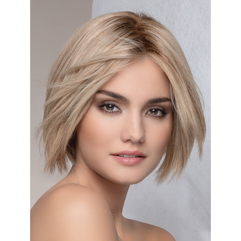 The Wish Wig by Ellen Wille is a short trendy human hair bob. With anextended comfort lace front hairline, monofilament top, and100% hand-tied cap. Silicone-coated ear tabs, nape, and strips across the mono top.This salon-inspired cut bob features softtape