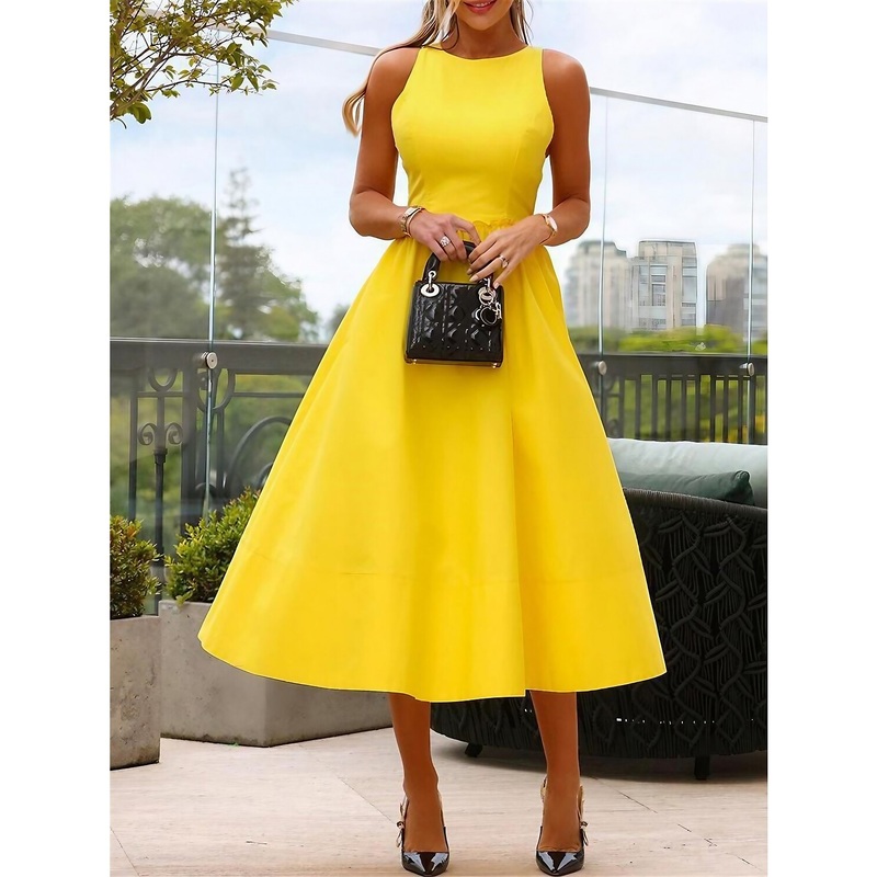 Be the first to review “Women’s Party Dress Homecoming Dress Cocktail Dress Midi Dress Yellow Sleeveless Pure Color Ruched Summer Spring Crew Neck Fashion Wedding Guest Vacation Summer Dress”