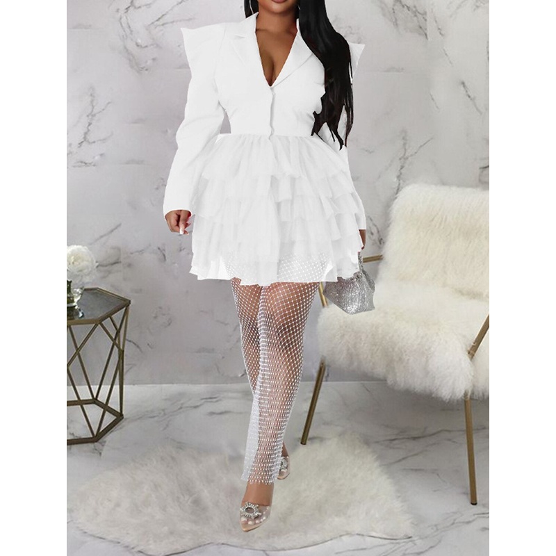 Women’s Party Dress Homecoming Dress Cocktail Dress Mini Dress Black White Blue Long Sleeve Plain Mesh Summer Spring Fall Shirt Collar Party Wedding Guest Birthday Vacation