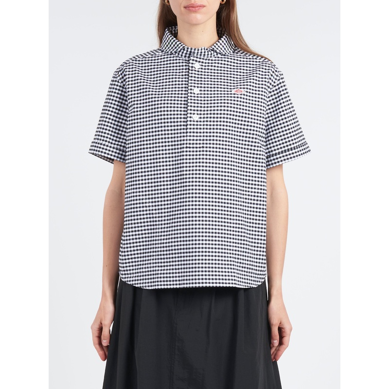 Danton Women's Round Collar Shirt features a timeless gingham print. The embroidered logo on the left chest adds a subtle, polished touch.Round collarHalf button placketPull-over styleGingham printEmbroidered logo at the left chestShort cuffed sleevesSide