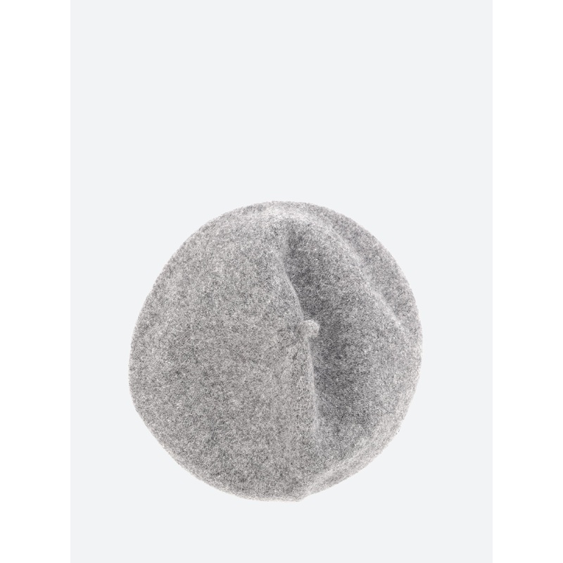 The top half of this soft hat comes in the shape of a beret with the tip on top. The lower part offers an elongated brim that you can roll or fold up or, of course, wear as is.Slouchy beretFelted woolElongated roll-up brimConical profileTip on topMaterials