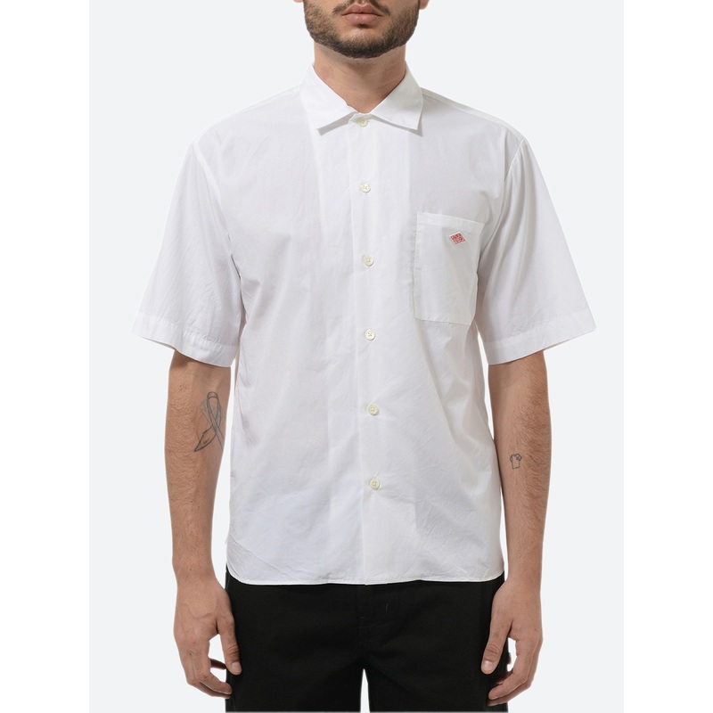 Danton work shirt made from lightweight cotton poplin. A simple workwear silhouette with the brand's signature woven brand patch at the chest.Spread collarFront button closurePatch pocket at the chestBox pleat at the backRounded shirt hemRelaxed fitMateria