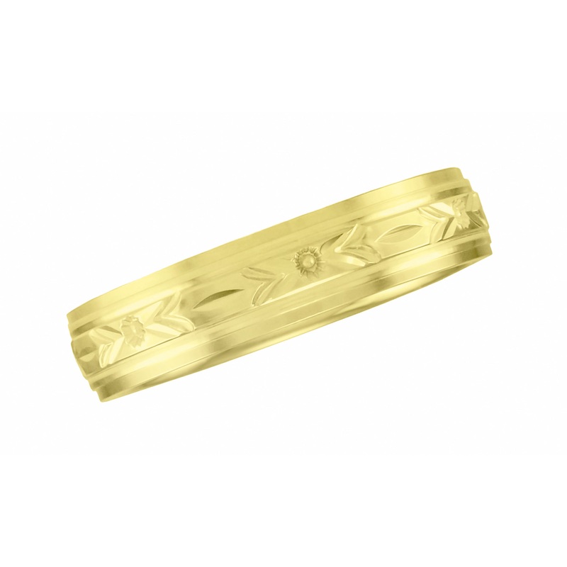Yellow Gold 1930’s Art Deco Men’s Floral Grooved Wedding Band – 5mm Wide