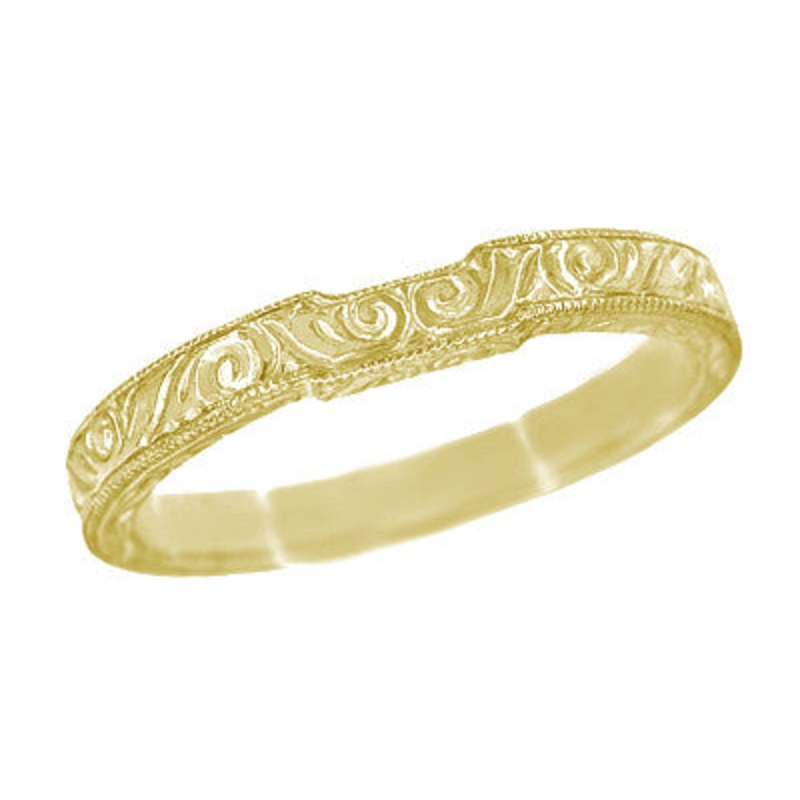 Yellow Gold Art Deco Contoured Engraved Scrolls Wedding Band