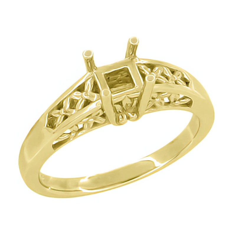 Yellow Gold Art Nouveau 1905 Design Flowers & Leaves Filigree Engagement Ring Mounting for a 3/4 – 1 Carat Diamond