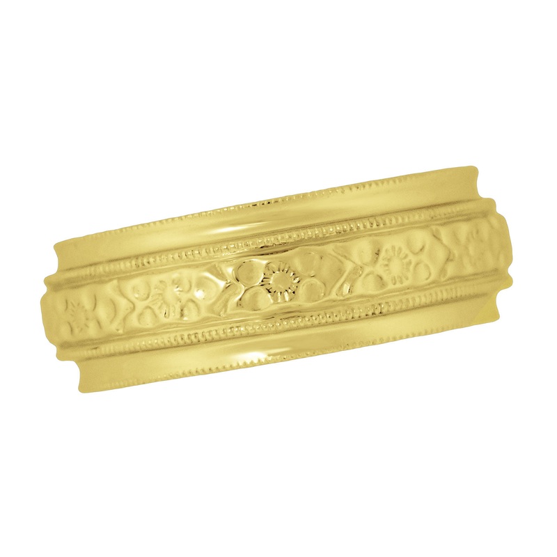 Yellow Gold Victorian Carved Leaves and Flowers 6mm Wide Wedding Ring