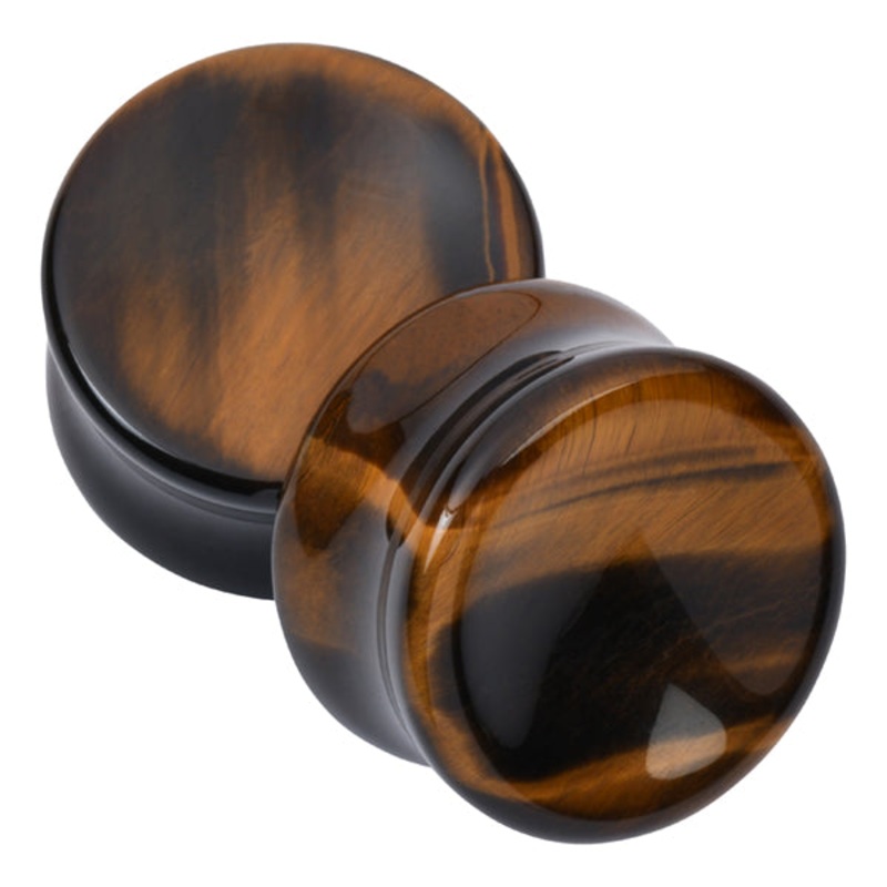 These double flare concave yellow tiger eye plugs have a wearable area of 3/8″ between flares. Choose your size below.