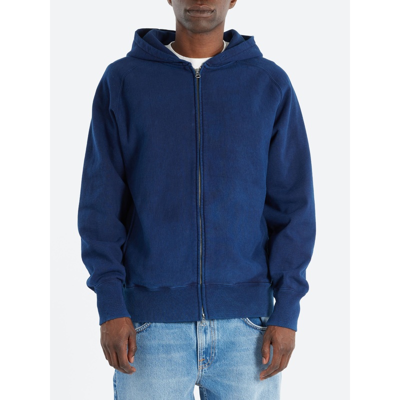 Blue Blue Japan zip hoodie with a loose and modern silhouette. Each item is dyed indigo by hand.Fixed hoodFront two-way zip closureRaglan sleevesRibbed cuffs and hemLoose fitMaterialsFabric Content: 100% cottonMade in JapanThis product is made of material