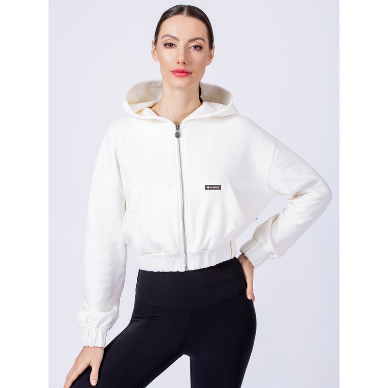 NATURAL COTTON+ AUMNIE select material+ Recyclable natural cotton+ Pre-shrunk and colour-fasted with sustainable methods to minimize environmental impactDescriptionCropped length zip up hoodieElastic cuffs and hem for adjustable lengthAUMNIE logo zipper ta