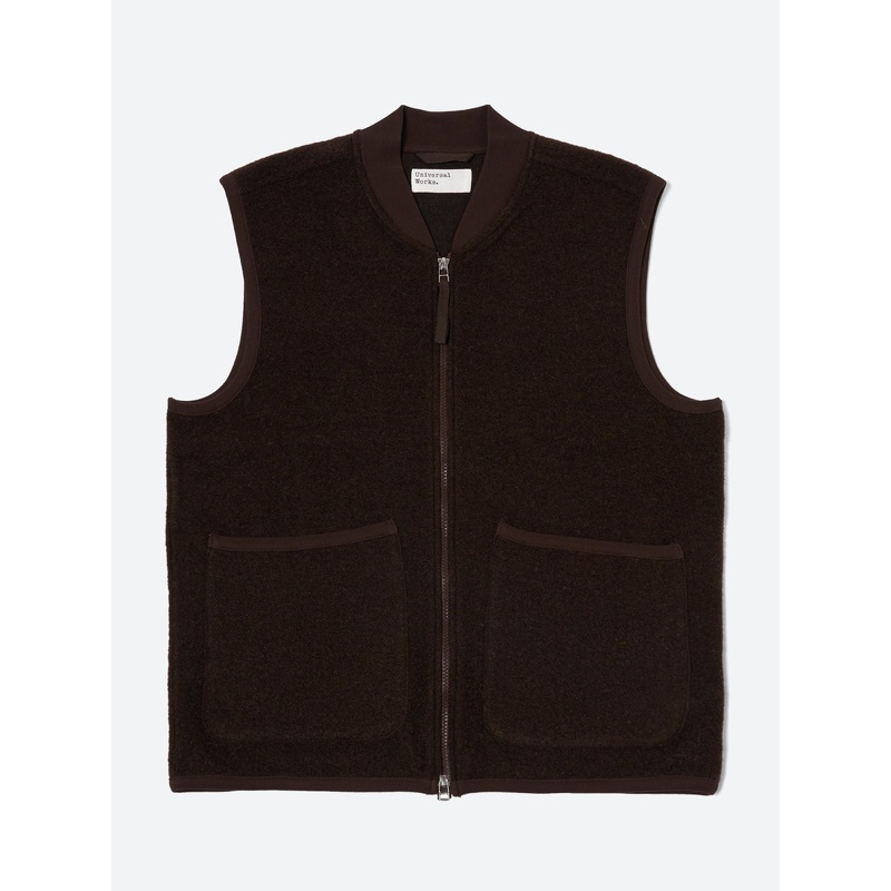 A Universal Works staple, the Zip Waistcoat is regular fitting, with two patched pockets, cotton jersey-ribbed neck, and binding and a two-way zip front.