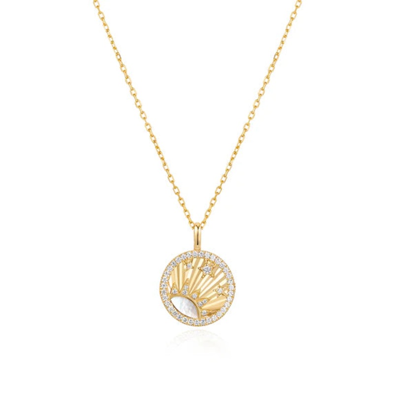 Elevate your jewellery collection with the Zoom Gold Shiny Sun Star Necklace, a sophisticated piece inspired by the warmth of sunshine. Crafted from 925 sterling silver with 14kt gold plating, it features delicate mother of pearl and sparkling cubic zircon